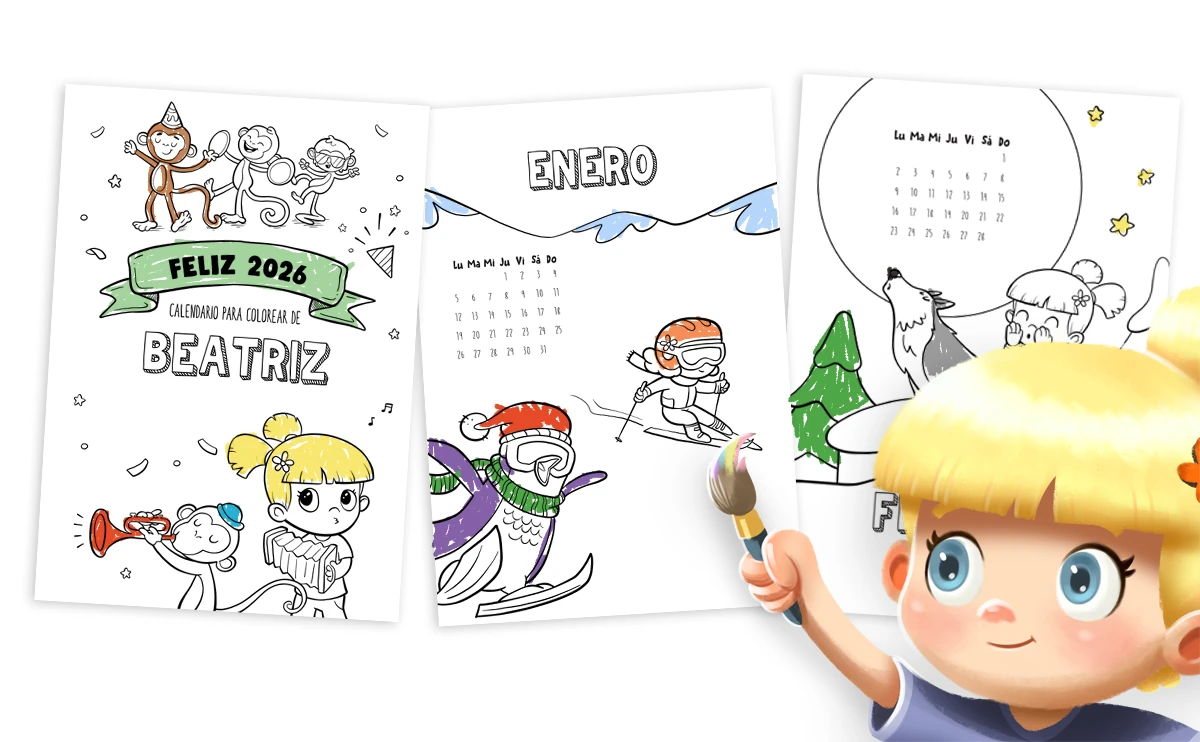 ¡Tu peque se divertirá coloreando nuestro precioso calendario 2026 personalizado!